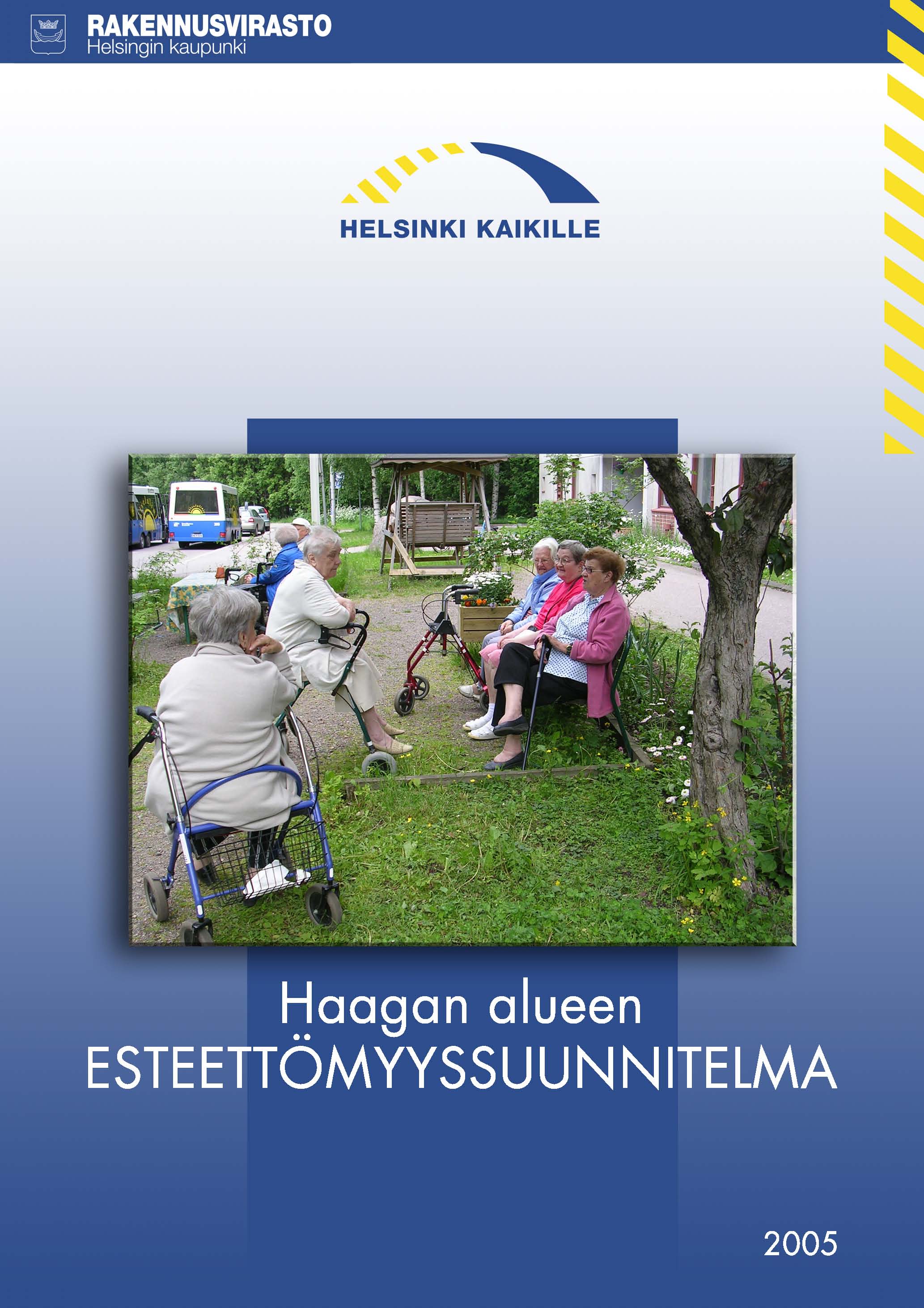 Helsingin kaupungin esteettömyyssuunnitelmassa ajalle 2005-2010 määriteltiin Helsingin esteettömyyden kehittämisen periaatteet vuosille 2005-2010. Helsingin kaupunginhallitus hyväksyi esteettömyyssuunnitelman 14.11.2005. Helsingin kaupungin esteettömyysstrategian koordinointiosan ja suunnitelmaosan toteuttamisesta vastaa Helsinki kaikille –projekti. Suunnitelmaosa muodostuu seuraavista osista: