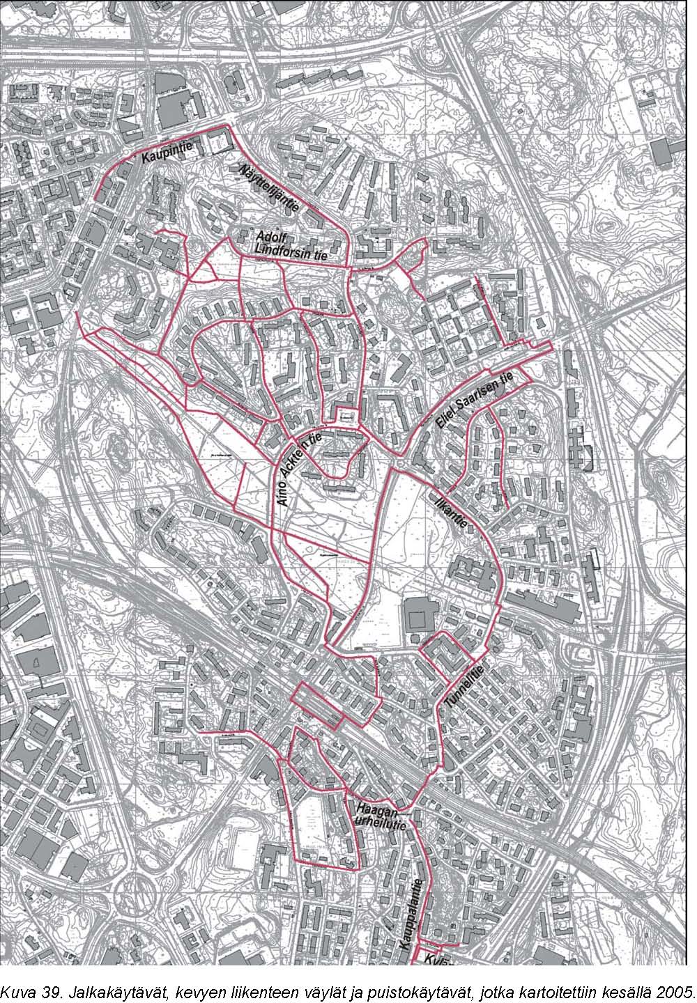 Kaupinmäenpolku alikulkuineen on keskeisin yhteys asemalta Kaupintien länsipuolisille asuinalueille. Yhteys aseman ja alikulun välillä tarvitsee monenlaisia kunnossapidon toimenpiteitä: ylikasvaneet pensaat työntyvät portaisiin ja luiskiin, penkit ovat rikki ja portaissa on rikkinäisiä askelmia. Kaupintien itäpuolen kevyenliikenteen väylällä on toteutettu jalankulun ja pyöräilyn erottelu hyvin. Tämä sopisi esimerkiksi myös länsipuolen väylälle. Muut alueen ongelmat ovat hyvin pieniä.