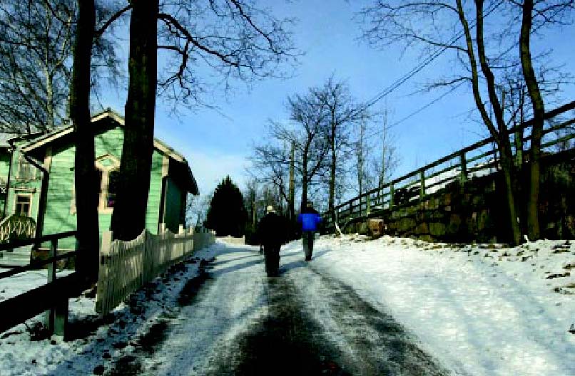 Kuva 4. Opastavia päällystelaattoja on monenlaisia ja käynnissä on parhaillaan useita kehityshankkeita Suomen oloihin sopivien laattojen kehittämiseksi. Tämä kuva on yksi esimerkki opastelaattojen käytöstä puistokäytävällä (Utrecht, Hollanti).