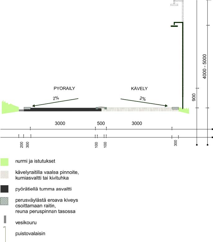Kuva 2. Esteettömän puistoreitin perusrakenne.