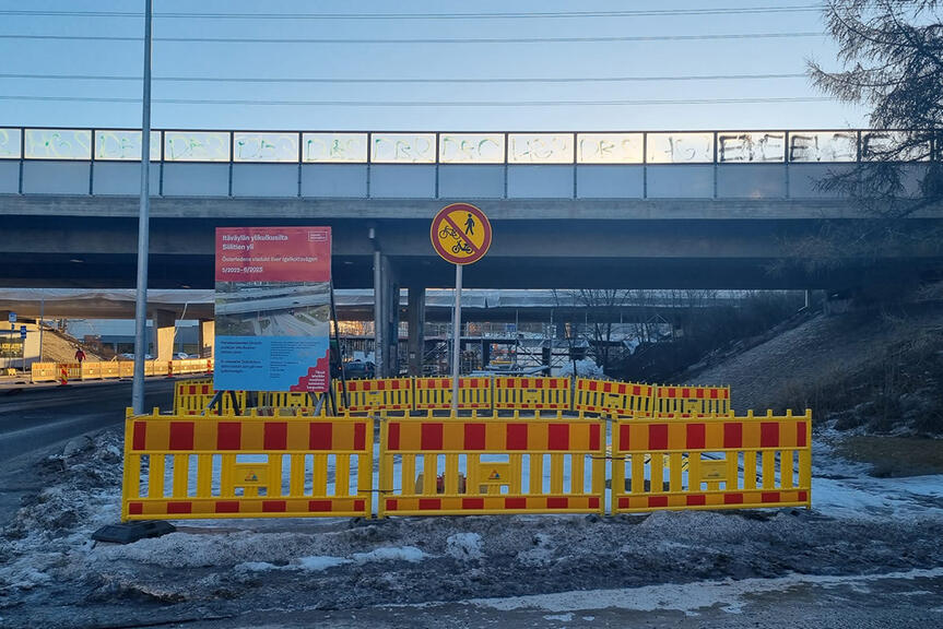 Sahaajankadun ylittävän sillan alapuolella työt jatkuvat näillä näkymin läpi talven.