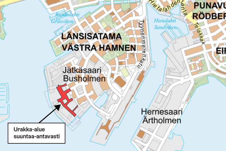 Jätkäsaaren lounaisosaan sijoittuvan alueen katujen, vesihuollon ja kunnallistekniikan rakentaminen alkaa 17. heinäkuuta alkavalla viikolla. Rakennushanke käsittää Tulimaankadun, Tongankujan, Samoankujan, Barbadoksenkujan, Barbadoksenkadun, Kanariankadun ja Haitinkujan rakentamisen. Katuja rakennetaan vaiheittain, ja työ kestää alkuvuoteen 2024.