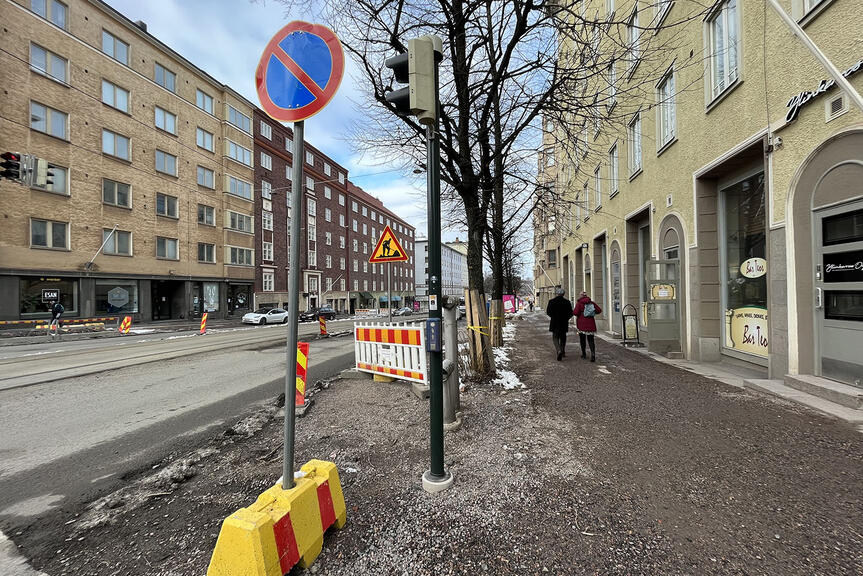 Pintatyöt tuovat muutoksia jalankulun reitteihin Runeberginkadulla