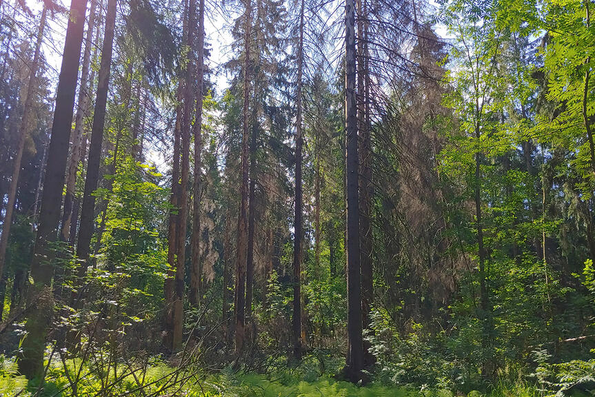 Pääosa puista on kirjanpainajakuoriaisten kurittamia kuusia. Osassa puista on tehty havaintoja myös aitomonikirjaajasta, kuusentähtikirjaajasta sekä kuusijäärästä. Hyönteisten valtaamien puiden poistoa tehdään tarvittaessa koko kesän ajan, sillä kaarnakuoriaisten aiheuttamia tuhoja voi esiintyä lämmön lisääntyessä pitkälläkin ajanjaksolla.