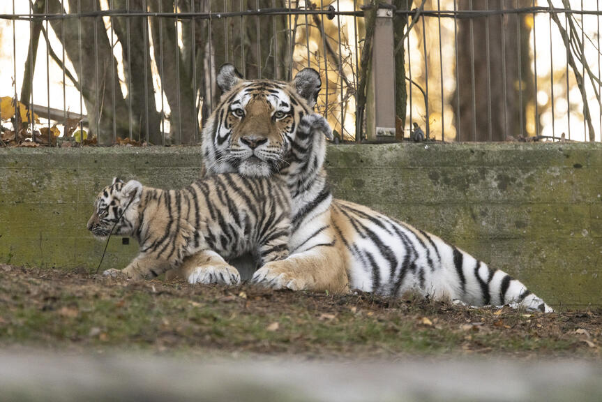 Pennut painavat jo lähes 9 kiloa. Ne nakertelevat jo innokkaasti lihanpaloja, vaikka emon maito on edelleen pikkutiikereiden pääravintoa. Päiväunien lomassa ne ulkoilevat emonsa seurassa päivittäin. Pennut ovat uteliaita, mutta arkailevat vielä jonkin verran ihmisiä.