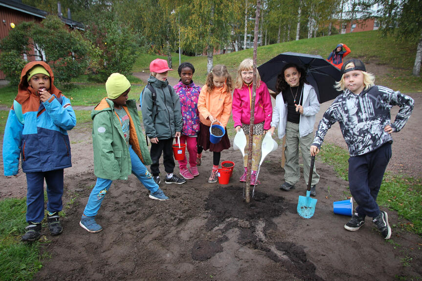 Lapsille puu joka vuosi uuteen tai peruskorjattuun puistoon