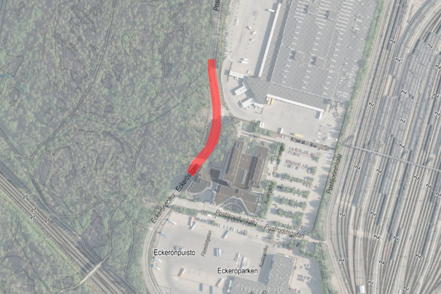 Siirrettävä kohta katua kulkee nykyisen Helsingin postikeskuksen edestä. Kadun linjaus muutetaan, jotta Postintaival 7:n edustalle saadaan rakennettua Postille uusi pysäköintialue, kun nykyisen pysäköintialueen kohdalla oleva maa puhdistetaan. Uusi linjaus on väliaikainen, ja sen avulla myös mahdollisestaan Eteläisen Postipuiston toteuttaminen.