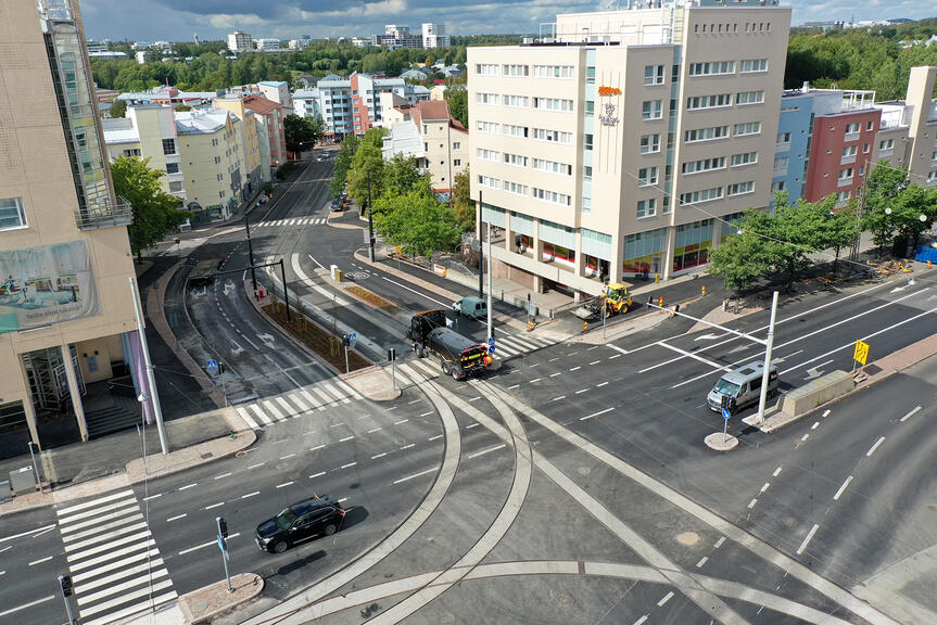 - Cykelvägarna vid Mannerheimvägen ändrades till enkelriktade, och för cyklister byggdes väntplatser där de kan svänga.
