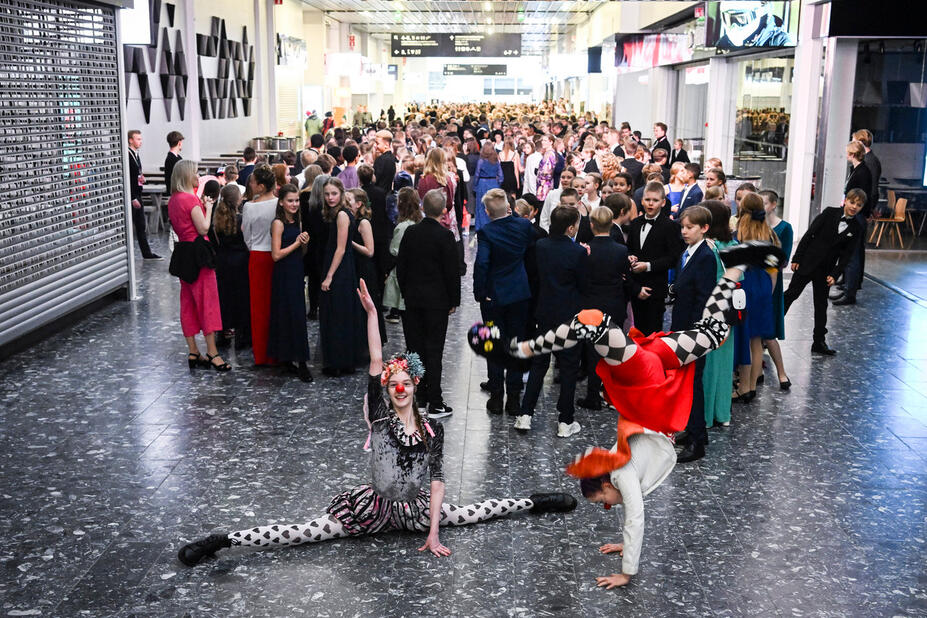 Gruppen Circus Helsinki underhåller dem som väntar i hälsningskön och Gardets musikkår spelar musik då eleverna kommer in. På festen uppträder gatudansgruppen Lucid Crew som fått sin början på Malms ungdomsgård. Anna Norros och Paul Uotila är programledare för evenemanget.