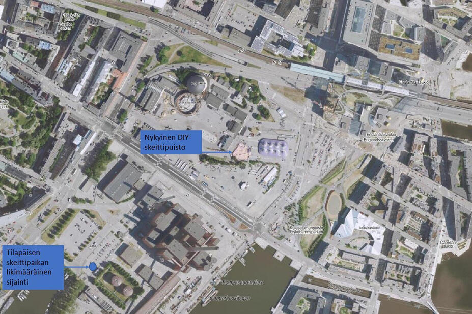En ny permanent skateplats kan anläggas i området för Hanaholmens före detta kraftverk först i slutet av 2020-talet. För staden är det dock viktigt att även i fortsättningen möjliggöra skateboardåkning i området. Därför anlägger staden en tillfällig skateramp i det före detta parkeringsområdet för Helens kraftverk på Hanaholmen innan staden anlägger en ny permanent skateplats i Södervik. Skateplatsen används uppskattningsvis i fem år, och staden beviljar skateboardåkare understöd för anläggandet av skateboardplatsen. Staden har kommit överens om ärendet med de aktiva aktörerna för DIY-skateparken i Södervik.
