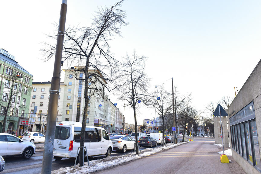 På grund av totalrenoveringen av Mannerheimvägen har man planerat att fälla sammanlagt cirka 90 träd denna vår. En del av dessa har redan fällts. I stället för de träd som fälls planteras ungefär lika många träd.