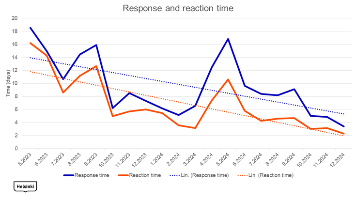 We read all the feedback we receive. We strive to respond within a week to feedback where the sender has indicated they wish to receive a response. Immediately after the new feedback service was implemented, response times were longer, but as the processes have become more established, we have managed to shorten the response time from over two weeks to about a week. In 2024, the average response time to feedback was 8.29 days.