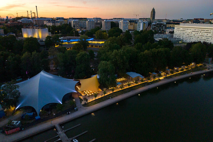 Last year, Huvilanranta, a festival centre open to the public, was opened around the iconic Helsinki Festival event venue of Huvila. This year, the terrace area, designed by JKMM Architects, winners of the Finlandia Prize for Architecture, will open three weeks before the beginning of the Helsinki Festival and remain open until the end of the festival.