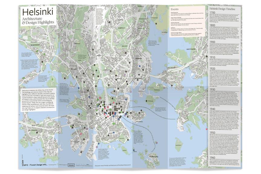 “Architecture and design continue to be some of Helsinki’s key attractions. We are delighted to welcome the new map featuring both the city’s rich architecture and design history and new sites such as the Ruoholahti computer-themed playground”, says Chief Design Officer Hanna Harris from the City of Helsinki.