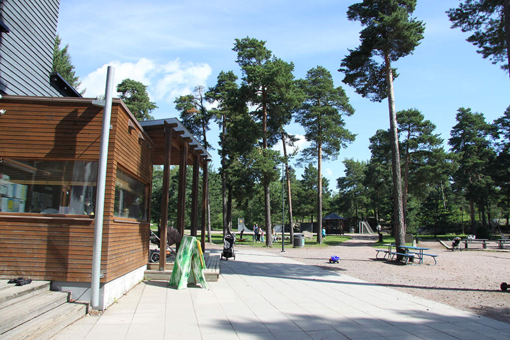 - Leikkipuistossa on keinuja, liukumäki, hiekkalaatikko.