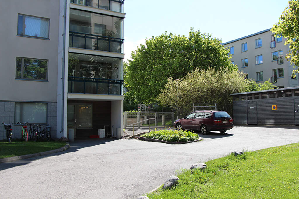 - Sisäänkäynti erottuu selkeästi ja on valaistu. Sisäänkäynnin yläpuolella on katos.