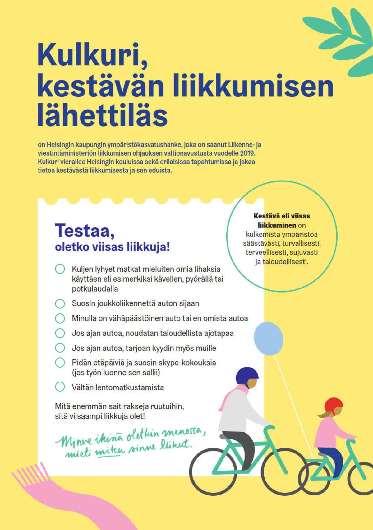 Infolehtisestä löydät tietoa kestävästä liikkumisesta niin ympäristön kuin lasten terveyden kannalta.