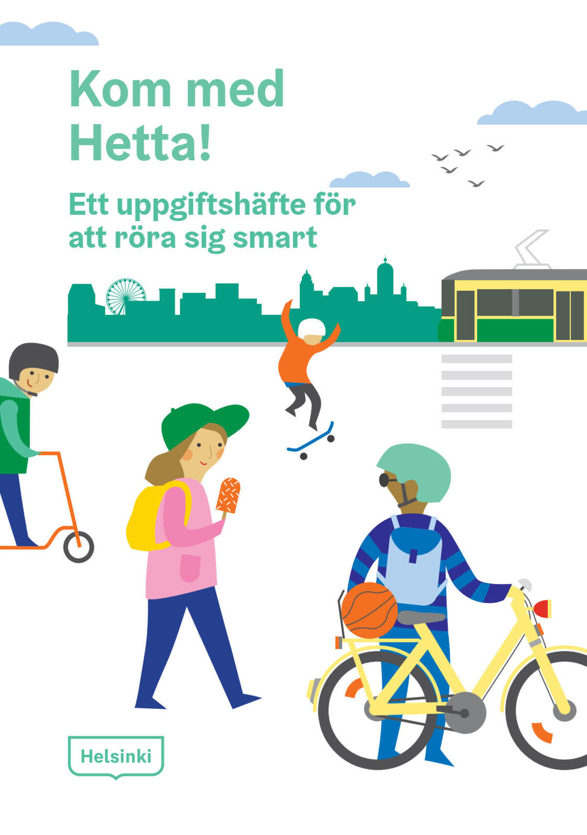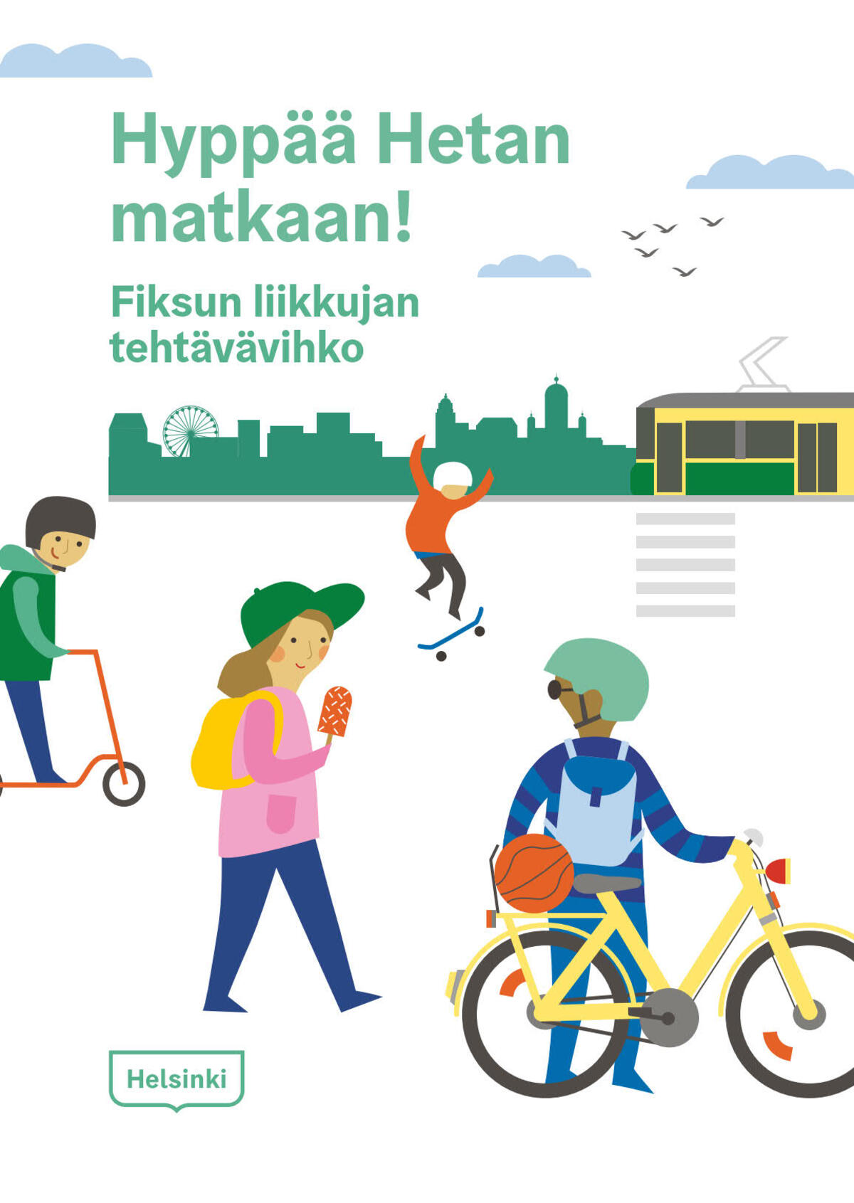 Hyppää Hetan matkaan on peruskoulun alaluokkalaisille suunnattu tehtävävihkonen, jonka teemana on kestävä liikkuminen. Tehtävien ohella vihkossa kulkee tarina Hetasta ja hänen matkoistaan.