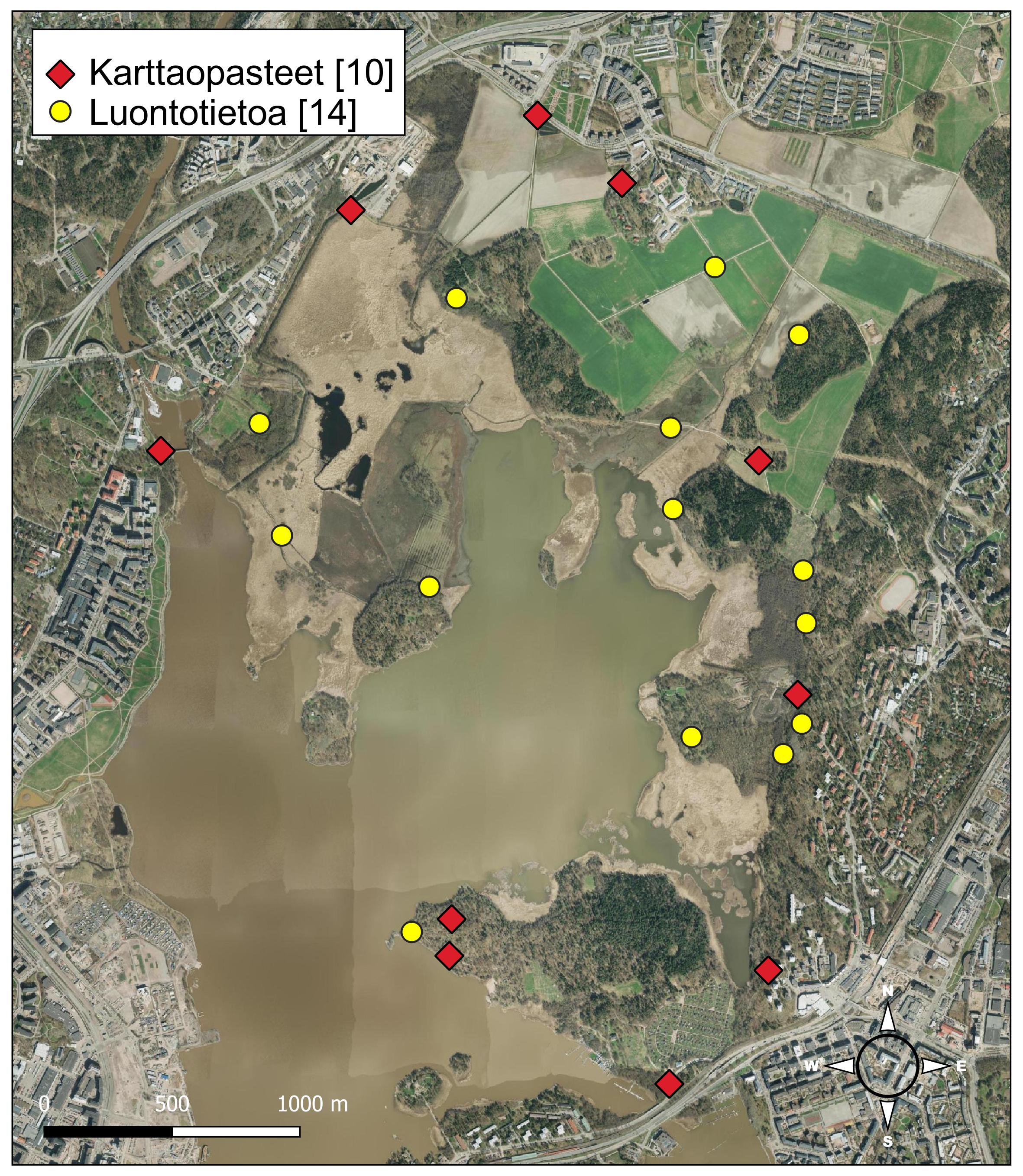 Tutustu alta tarkemmin Vanhankaupunginlahden luontoalueisiin ja lintujentarkkailupaikkoihin. Vanhankaupunginlahden ympäristöstä löytyy myös yksittäisiä luontotietotauluja. Luontotietotaulujen sijainnin näet karttakuvasta (ei saavutettava).