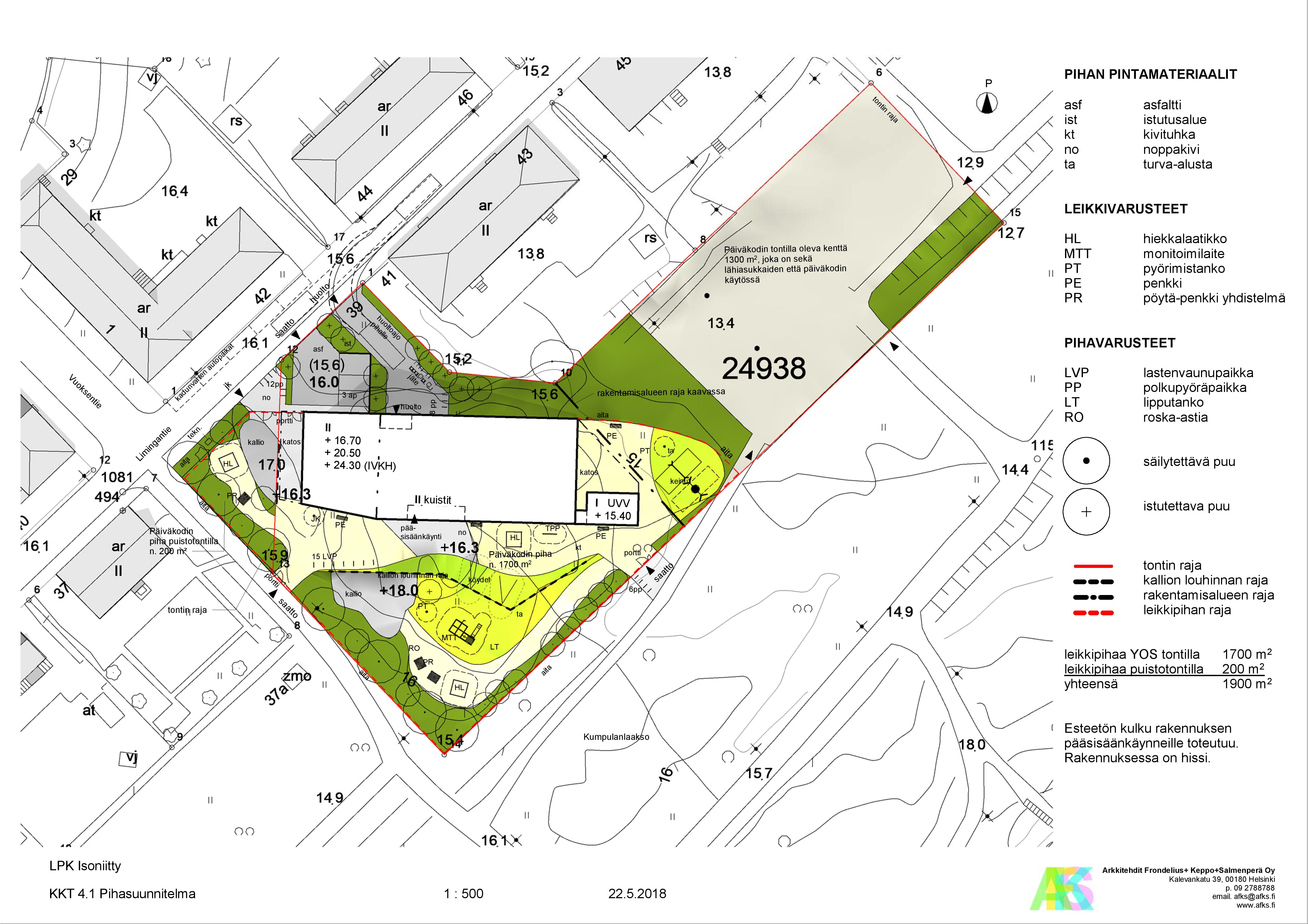 Rakennuksen sijoittuminen tontille ja pihasuunnitelma. Klikkaa kuva suuremmaksi