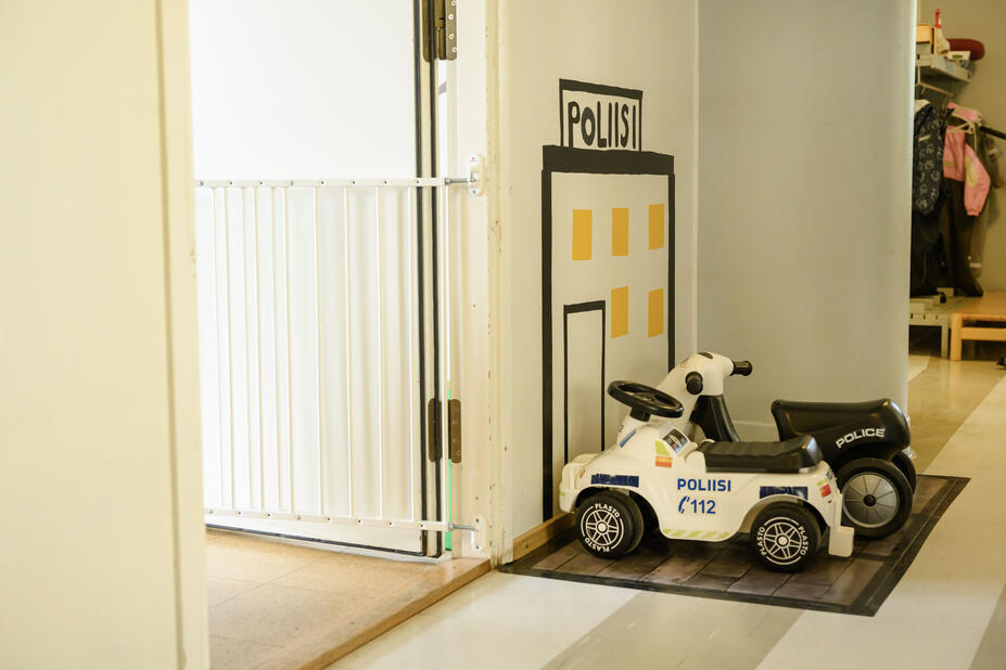 Herttoniemen päiväkodin leikkikeittiö houkuttelee kotileikkiin. Mutta lapset touhuavat mielellään myös taikametsässä, lentokentällä, rakennustyömaalla, taideateljeessa, Lego-nurkkauksessa, kirjastossa ja kaupunkimaailmassa metrotunneleineen ja torneineen.