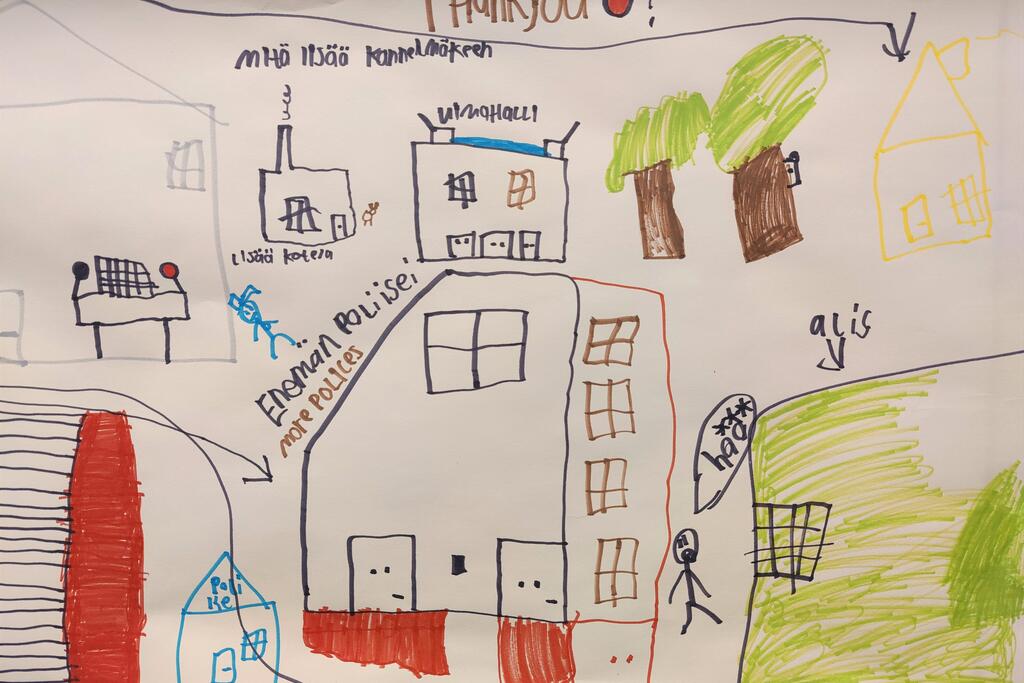 Lapsilla ja nuorilla on ollut myös turvallisuustyöpajoja. He ovat kertoneet muun muassa toiveensa, kuinka Kannelmäen Sitra-toria kannattaisi uudistaa.