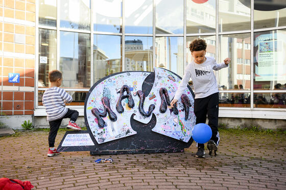 Suunnittelijaopettaja Satu Luomajoki kertoo, että Malmitalon juhlavuoden kunniaksi Helsingin työväenopisto halusi kutsua paikalle nimenomaan lapsiperheitä.