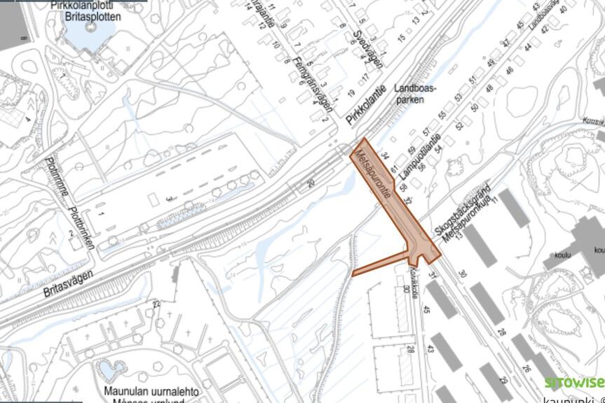 Uusi puistoraitti on noin 70 metriä pitkä, ja se kulkee nykyisen metsäalueen läpi. Rakentamisen vuoksi joudutaan kaatamaan puita tammi–helmikuun vaihteesta alkaen. Uusi ulkoilureitti rakennetaan, sillä asemakaavassa on varattu tila taimimyymälää varten ja toteutuessaan rakennus sijoittuisi nykyisen ulkoilureitin päälle.