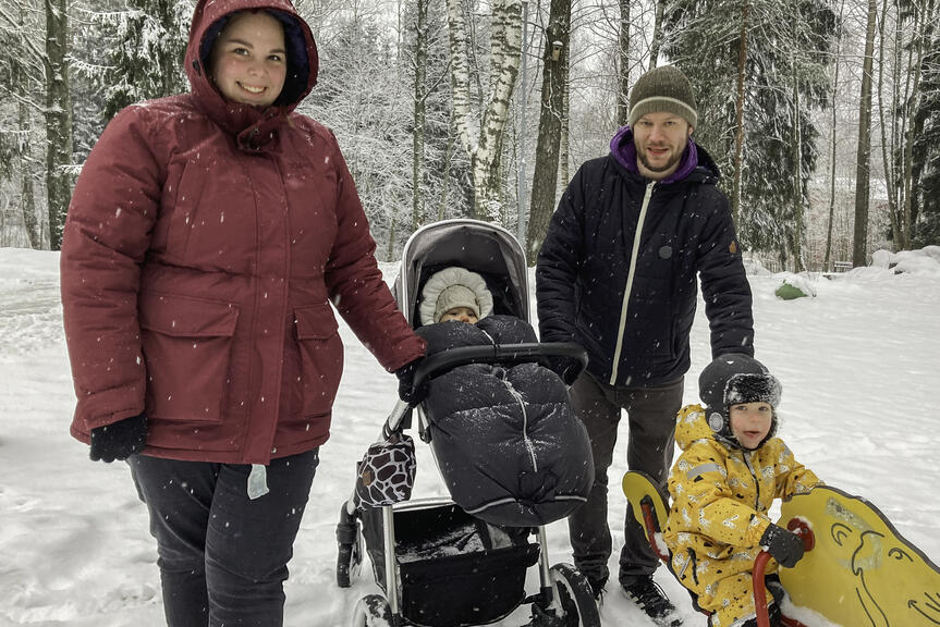 Neuvolakäynnit ovat perheessä odotettuja. Nina Norrin mielestä on hienoa, että suomalaisissa neuvoloissa pidetään huolta lapsen kehityksestä mutta myös äidin ja koko perheen hyvinvoinnista.