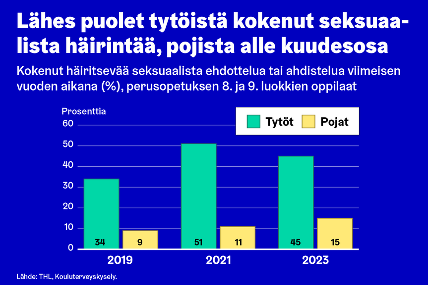 Selviä sukupuolieroja on myös nuorten mielen hyvinvoinnin ja seksuaalisen häirinnän kokemuksissa: tilastojen valossa tyttöjen tilanne on merkittävästi poikia heikompi. Valtaosa rikoksesta epäillyistä alaikäisistä puolestaan on poikia.