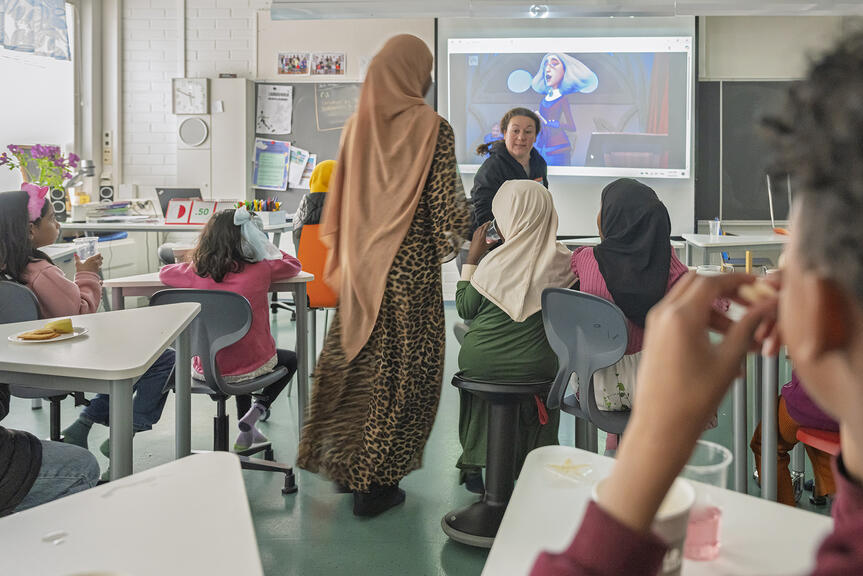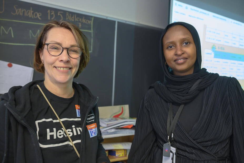 Aikuisten luokassa Heinonen ja hänen kollegansa Fadumo Bulhan ovat vastaamassa vanhempien kysymyksiin ja kertomassa tulevan kesän toiminnasta.