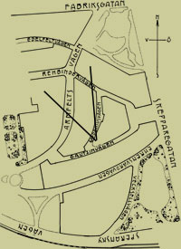 Hevoskärryjen takana tässä Eira näkymässä on Laivurinkatu. Kuva on pohjoisen päin kuvattu panoraaman osa.