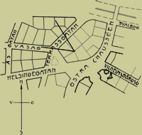 Kuvattu Pengerkadun (nykyinen Kinaporinkatu) tontilta länsiluoteeseen.