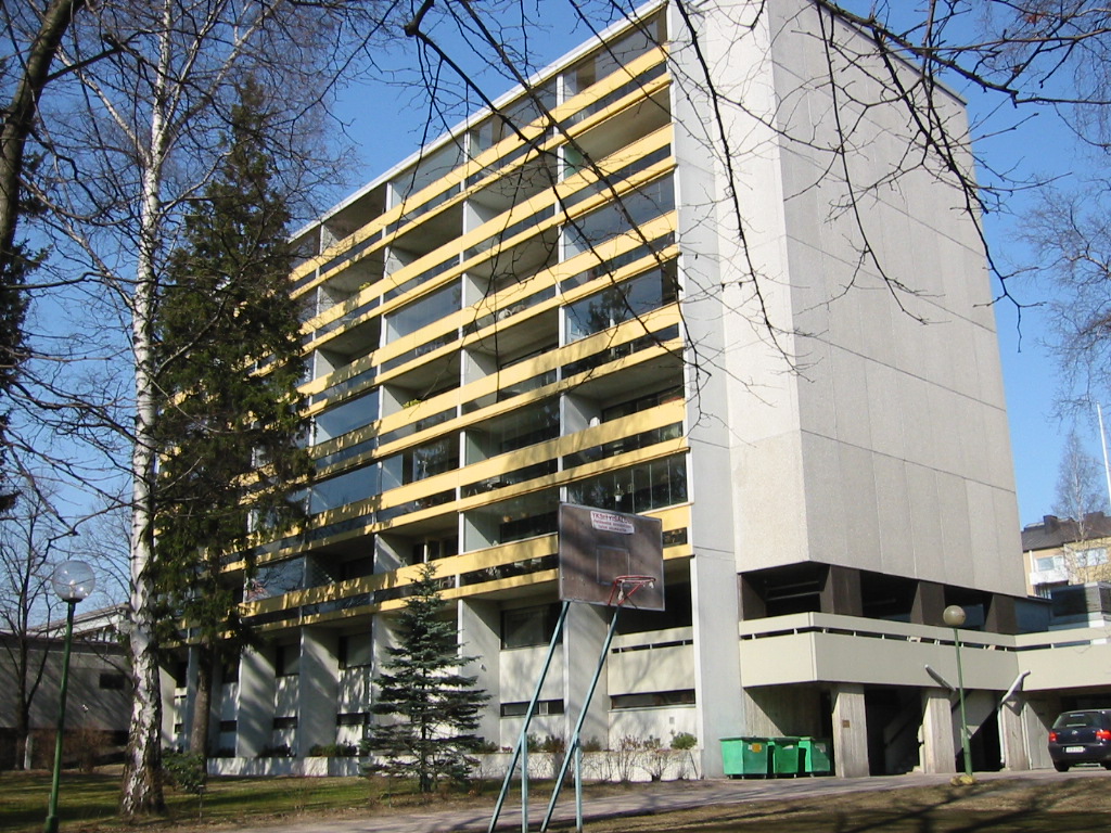 | Rakennushistoria: | Vuonna 1991 rakennuksen parvekkeet suunniteltiin lasitettaviksi (sisustusarkkitehti Viola Tyllilä). Vuonna 1996 rakennuksen ullakkokerroksen julkisivut pinnoitettiin Steni-julkisivulevyillä ja räystäspellitys uusittiin (Kirsi Nummelin). |