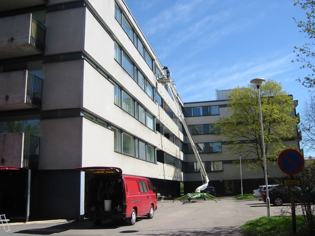 | Rakennushistoria: | Vuonna 1982 rakennuksen julkisivut suunniteltiin lisälämmöneristettäviksi ja rapattaviksi (C-J Gestranius). Vuonna 1991 asunnot A 11 ja A 15 suunniteltiin yhdistettäviksi (Arkkitehtitoimisto Heino&Laakso). Vuonna 1992 osa rakennuksen parvekkeista suunniteltiin lasitettaviksi. Vuonna 2001 suunniteltiin rakennuksen ikkunoiden vaihtaminen puu-alumiini -ikkunoiksi ja samalla ikkunoiden väliset paneelit vaihdettaisiin kuitusementtilevyistä metallilevyiksi (arkkitehti Jari Häkkänen). |