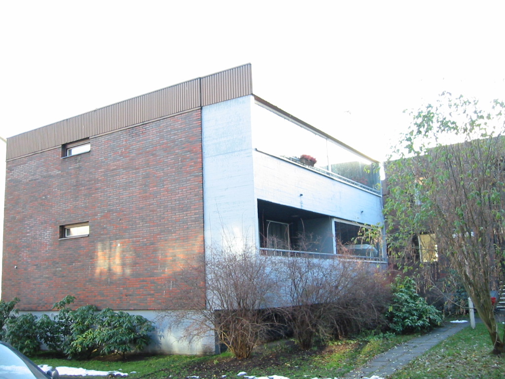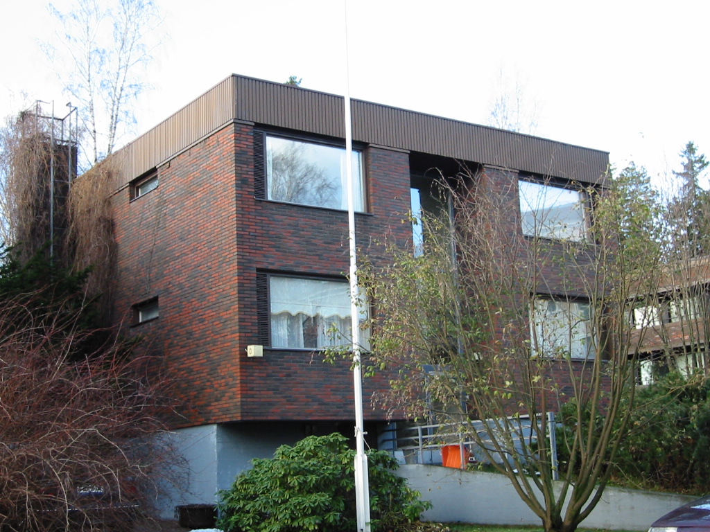 | Julkisivut: | RVVA:n asiakirjojen mukaan rakennus on katettu kuparipellillä. Julkisivut on verhoiltu tummaksi poltetulla julkisivutiilellä, osin julkisivut ovat maalattua betonia. Betonisokkeli on maalattu vaalean harmaaksi. |