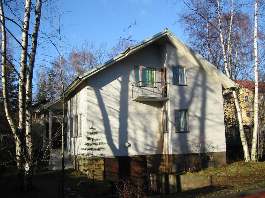 | Julkisivut: | Rakennuksen taitekatto on katettu pellillä. Julkisivut ovat vaaleaksi maalattua rappausta. Ikkunat ja ovet ovat puuta. |