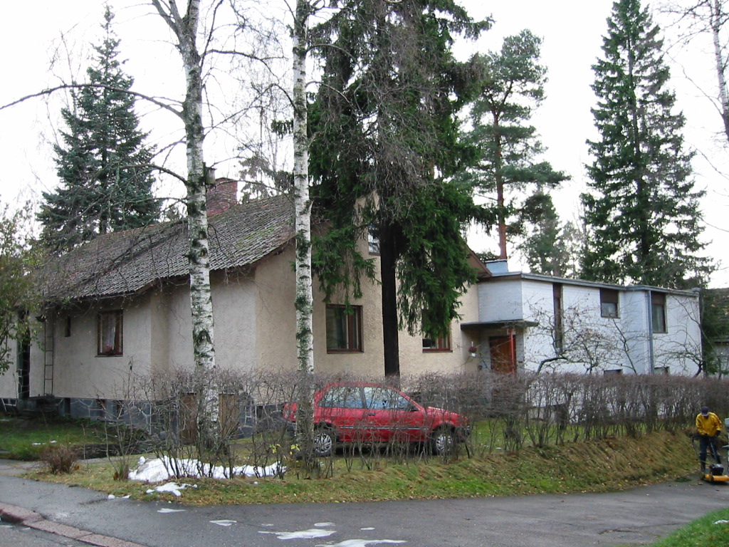 | Rakennushistoria: | Valmistuttuaan rakennus käsitti neljän huoneen ja keittiön asunnon, varastotiloja ja saunan. Vuonna 1975 rakennusta laajennettiin lisäsiivellä, johon sijoitettiin erillinen, yliarkkitehti Myyrinmaan pojan käyttöön suunniteltu asunto (arkkitehti Viljo Myyrinmaa). |