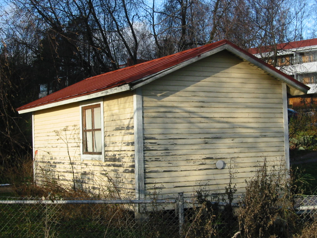 | Rakennushistoria: | Vuonna 1978 rakennukseen suunniteltiin muutoksia. Päädyn pariovi suunniteltiin poistettavaksi ja leveälle sivulle suunniteltiin uusi pariovi (arkkitehti Anja Wahlberg). |