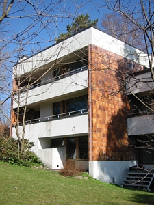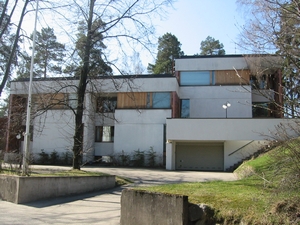 Julkisivut: | Rakennus on katettu kuparipellillä. Julkisivut ovat valkoiseksi maalattua betonia ja klinkkeriä. Ikkunoiden väliset paneelit ovat lakattua puupaneelia. |