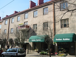 | Erityispiirteet: | Rakennuksen ensimmäiseen kerrokseen on alkuperäispiirustuksissa merkitty kaksi myymälää ja kahvila. |