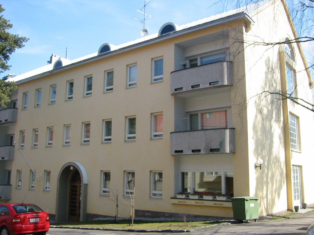 | Rakennushistoria: | Vuonna 1965 haettiin lupaa öljysäiliöhuoneen rakentamiseen ja hiilikellarin muuttamiseen saunaosastoksi ja ulkoiluvälinevarastoksi (rakennusmestari Pentti Seppänen). Vuonna 1969 haettiin lupaa asunnon 5 sisätilojen muutoksiin (Arkkitehtitoimisto Kaija ja Heikki Sirén). Vuonna 2001 haettiin lupaa asunnon 6 sisätilojen muutoksiin (arkkitehti Juan Luis Briceno). Vuonna 2002 haettiin lupaa asunnon 4 sisätilojen muutoksiin (arkkitehti Kari Leppänen). |