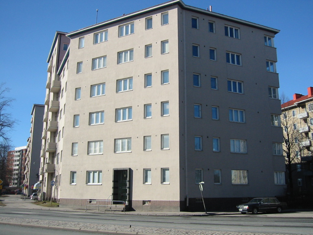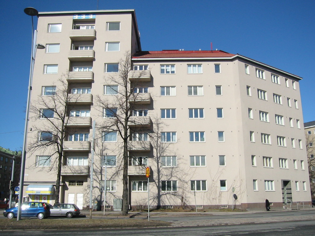 | Rakennushistoria: | Vuonna 1971 haettiin lupaa muuttaa myymälä kioskiksi. Vuonna 1974 haettiin lupaa julkisivun maalaukseen. Vuonna 1974 haettiin lupaa muuttaa asunto hammaslääkärin vastaanottotilaksi (arkkitehti Olli Kuusi). Vuonna 1984 haettiin lupaa rakentaa sauna asuntoon B 17 (sisustussuunnittelija Anne Autere). Vuonna 1985 haettiin lupaa teräsbetonisten parvekekaiteiden uusimiseen putkirunkoisilla vanerilla ja pellillä verhoilluilla kaide-elementeillä (rakennusinsinööri Heikki Liukkonen). |