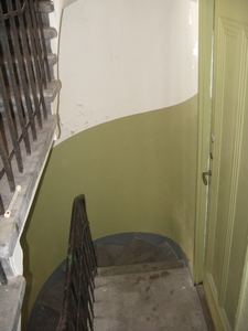 | Porrashuone on U-mallinen ja porras on yksivartinen kiertyvä porras. Kerrostaso on portaan lyhyellä sivulla. Porrashuoneen seinän alaosa on vihreä ja yläosa valkoinen. Lattiamateriaalina on hiottu betoni. Kaide on neliöteräksistä tehty pinnakaide, jonka pystypinnoja sitovat vaakasuuntaiset lattateräkset, käsijohde on teräsputkea. Hissiä ei ole. Ovet ovat alkuperäisiä peiliovia. Ikkunat ovat alkuperäiset. |