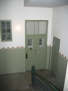 | A- ja B-portaat ovat keskenään tilallisesti erilaiset, yksityiskohdiltaan samankaltaiset. A-porras on avara ja avoin, tilallisesti jännittävä porrashuone, jossa kaksivartinen U-muotoinen porras liittyy epäsymmetrisesti (ikään kuin sisäkkäin) neliömäiseen kerrostasanteeseen. Kullakin tasanteella on kolme asuntoa, joihin johtaa pääovi ja sen vieressä keittiön ovi. Portaan ulkokaarteessa on pieni lepotasanne, ikkuna ja käynti tuuletusparvekkeelle. Näkyvät palkit. |