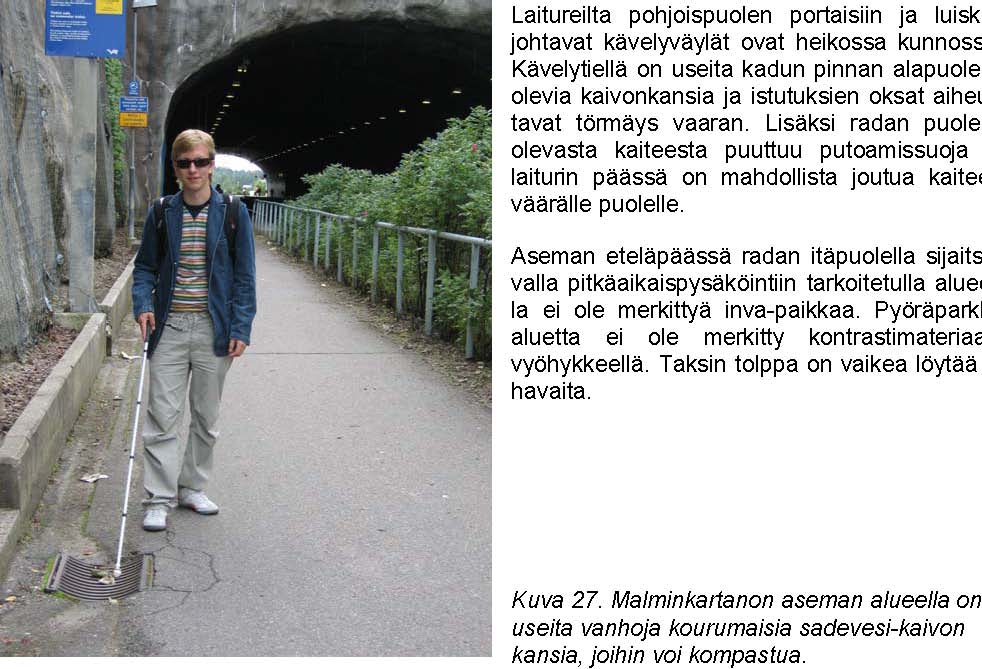 Rakennusviraston kesäharjoittelijat Anni Juutilainen ja Antti Vuori kartoittivat myös Kannelmäen ja Malminkartanon asemat kesällä 2005. Antti Vuori on itse näkövammainen ja hän on vastannut asemien alueiden kuvauksista heikkonäköisen ja sokean toimijan näkökulmasta.