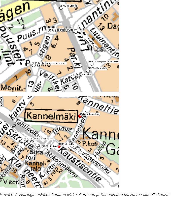 Kannelmäessä tulisi toteuttaa järjestelmällinen estetiedon kerääminen kaupungin estetietokantaan. Malminkartanon ja Kaarelan alueiden kartoittaminen voidaan toteuttaa tarpeen mukaan tulevaisuudessa.