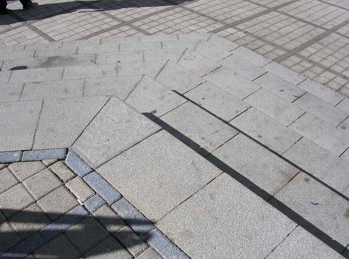 Kuva 8. Harmaiden portaiden askelmia ja erilaisia suuntia on heikkonäköisen vaikea tunnistaa yleisväritykseltään harmaalla alueella.