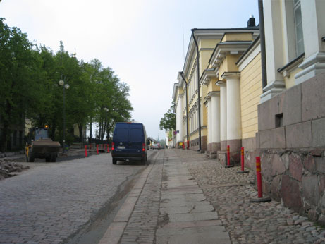 Alue koostuu useista hyvin erilaisista osa-alueista. Alueen länsiosaa leimaavat Senaatintorin ja Kauppatorin historialliset ympäristöt ja vanhat, epätasaiset luonnonkivipäällysteet. Suojateiden reunatukia on madallettu suurimmalla osalla suojatietä, mutta alueilla, joilla ei ole tehty muita kadun korjaus- tai päällystetöitä, jälkeenpäin viistetyt reunakivet ovat edelleen korkeita ja jyrkkiä. Ns. empire-keskustassa kaduilla, kuten Unioninkatu, Fabianinkatu ja Snellmaninkatu, kaduilla on myös suuria pituuskaltevuuksia, jotka heikentävät katujen esteettömyyttä.