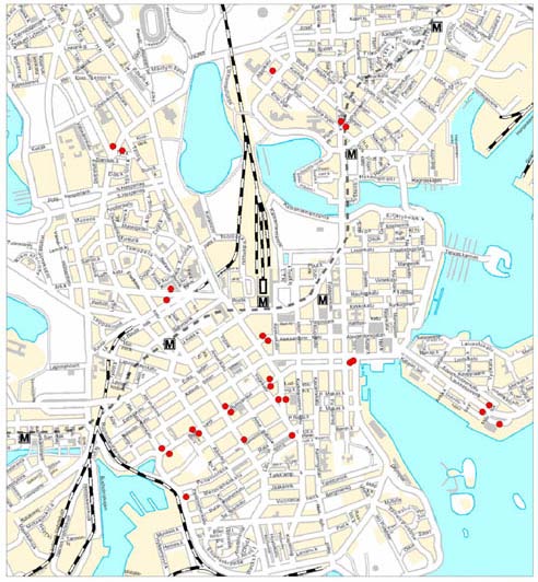 Liite 3. Yleisökäymälöiden sijainti Helsingin kantakaupungin alueella